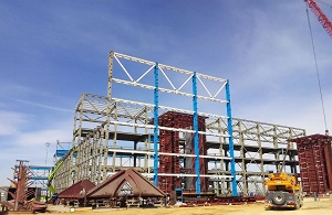 На сегодняшний день смонтировано 2965 тонн металлоконструкций главного корпуса электростанции, что составляет 45,8% от общего объёма. Устройство фундаментов башенной градирни выполнено на 43%.