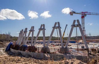 На площадке сооружения ЭБ-3 ЛАЭС началось устройство наклонной колоннады башенной испарительной градирни
